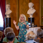 Akropoliseftermiddag den 4. september 2018. Cand.mag. Anne Middelboe Christensen, Teateranmelder ved Information. Forfatter til bl.a. ”Sylfiden findes” (2008) og ”Begejstring og brutalitet”, En guide til anmelderens rolle’ (2012). Ordmager i Middelboes Ordbutik og medlem af juryen bag Årets Reumert. Desuden er Anne vært på tv-programmet ’Kunstnermødet’ og dramaturg ved Vendsyssel Teater.