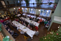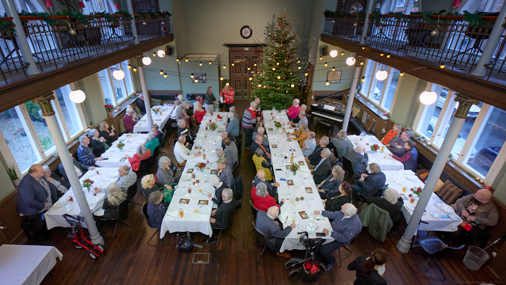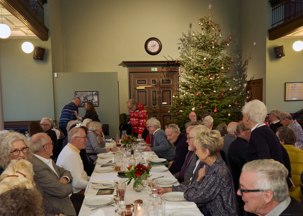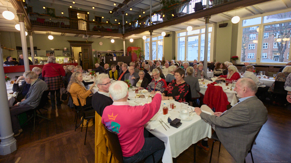 Lørdag den 14. december kl 12.00 - 17.00 afholdt vi årets julefrokost. Bestyrelsen har i år fundet frem til et ny sted på Frederiksberg, nemlig La Oficina, der har hjemme i Det Kongelige Klasselotteris gamle trækningssal, Suomisvej 4, 1927 Frederiksberg. Vi glæder os meget til at byde dig og eventuel ledsager velkommen i den historiske og hyggelige sal. Vi har bestilt Oficinas julebuffet, der består af: Koldrøget laks med dild, citron og rygeostcreme, marinerede sild og karrysild, æg & rejer med mayonnaise, rullepølse med sky, løgringe og karse, waldorfsalat. Og de lune retter er fiskefileter med remoulade og citron, leverpostej med stegte svampe og frikadeller, flæskesteg med rødkål, kogte kartofler og sauce. Som dessert er der risalamande med lun kirsebærsauce. Der afsluttes med kaffe og lidt sødt til kaffen. Hvis nogen har underholdende indlæg at bidrage med, vil vi være meget taknemmelige, og vi vil, som vi plejer, sørge for julemusik, vores sædvanlige lotteri med præmier og for en dejlig julestemning.