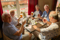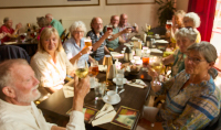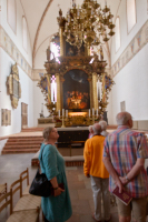 Rundt om på Sjælland finder vi stadig spor efter den historiske Skjalm Hvides slægt, der havde sin storhedstid fra den sidste halvdel af 1000-tallet og nogle hundrede år frem. Sorø Klosterkirke, der er bygget som gravkirke for Hvide-slægten, er et af disse spor. Biskop Absalon beordrede kirken bygget i 1161, og han er den første til at blive begravet i kirken. Ud over mange fra Hvideslægten ligger også kongerne Christoffer II og Valdemar Atterdag begravede i Sorø Klosterkirke. Faktisk blev desuden Margrethe I efter eget ønske begravet dér, men hun blev kort efter ”bortført” til Roskilde Domkirke, hvor hun som bekendt stadig ligger i sin kiste bag højalteret. SoroeakedemiSorø Akademi har haft en noget omtumlet tilværelse med forskellige formål. Det har været nedlagt og opstået igen ad flere omgange og endda været brændt en enkelt gang siden sin omlæggelse fra kloster til akademi efter Reformationen i 1536. Her fik det ved kongelig nåde lov til at bestå som kloster indtil den sidste munk var død. Da dette skete i 1580, anlagdes det første Akademi i 1585. De nuværende bygninger stod færdige i 1827, og med dekorationer påført i perioden 1860-70. cafetrekongerEfter omvisning i kirke og akademi har vi bestilt frokost i Café Tre Konger midt i Sorø by, hvor vi hver får serveret en platte bestående af sild, æg og rejer, fiskefilet og ribbensteg. Drikkevarer i denne forbindelse er for egen regning, mens kaffe og kage hører med til dagens traktement.