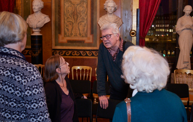 Da vi nu har fået den glæde at afholde vore foredrag i Balkonfoyeren på Gl. Scene har vi bedt Lilo Skaarup fra Det Kongelige Teaters Bibliotek og Arkiv om at komme og fortælle om Balkonfoyerens historie og også om de mange skønne statuer og portrætter samt de flotte udstillinger i montren som Lilo Skaarup står for og ligeledes den store betydning foyeren har som samlingssted for både kunstnerne og publikum.