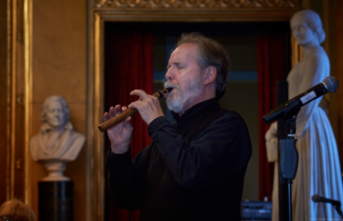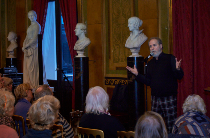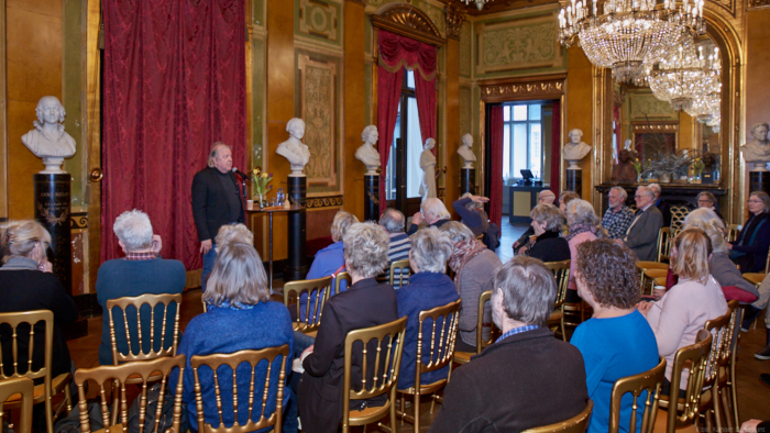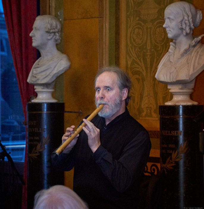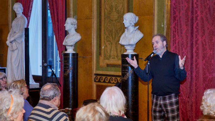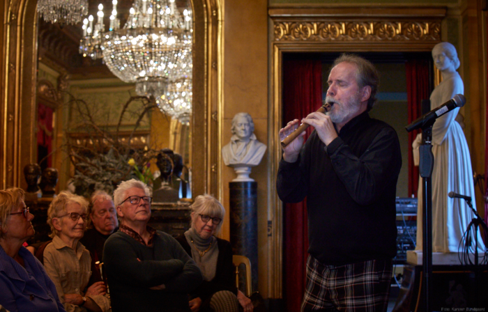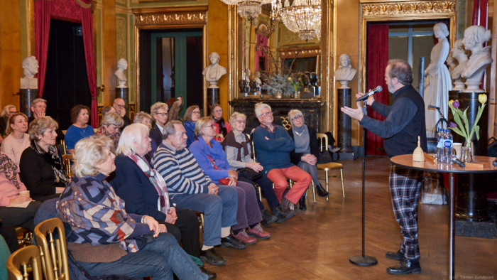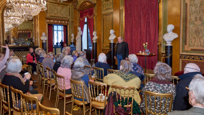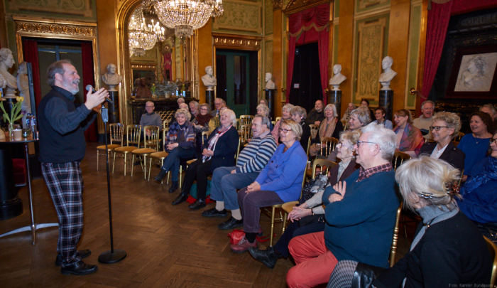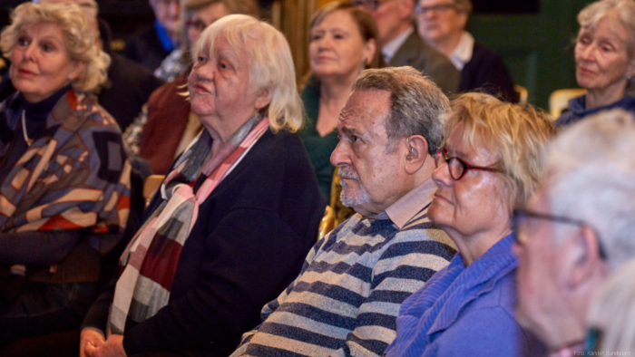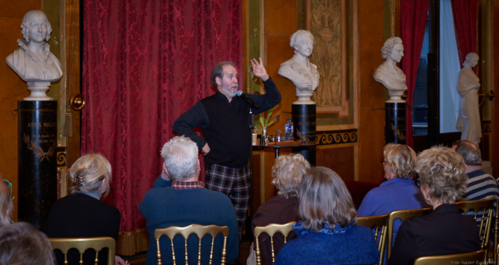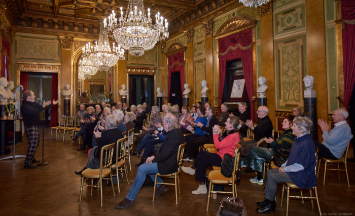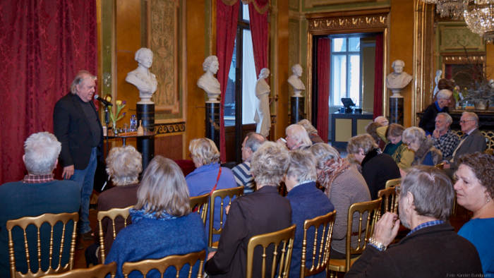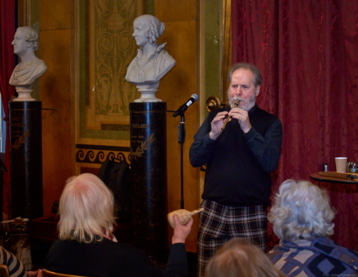 Torsdag den 22 marts havde Akropolis besøg af Det Kongelige Teaters solooboist Henrik Goldschmidt. Og det blev en eftermiddag for fuld udblæsning. At der kan være så megen energi og vilje i en enkelt person er utroligt, og så er han i stand til at formidle det med begejstring. I forbindelse med hans fars erindringer som udkommer som bog inden længe tog han os igennem nogle af familiens op- og nedture, katastrofer og mirakler. Det var spændende og rørende, der blev sunket mange klumper i halsen den eftermiddag. Han fortalt om The Middle East Peace Orchestra, om da han underviste palæstinensiske unge på Vestbredden, om MEPO Youth Project og om hans store engagement som rektor på Goldschmidt Musikakademi altsammen i et forrygende tempo og med megen humor.