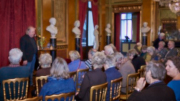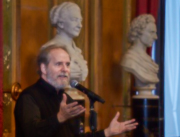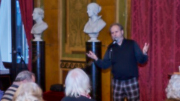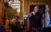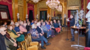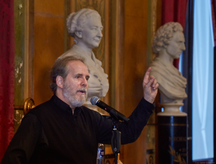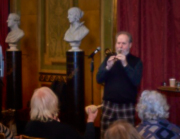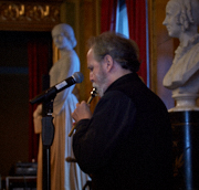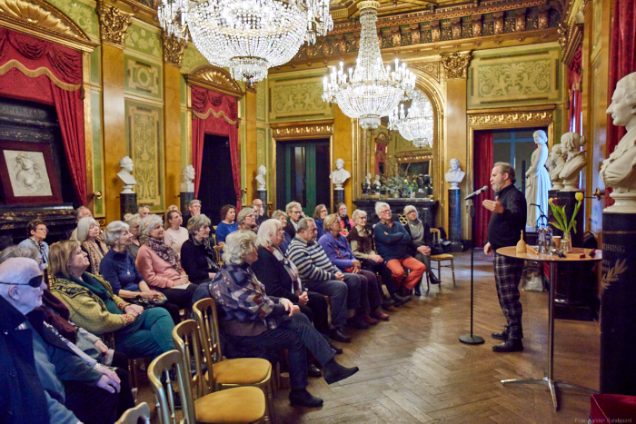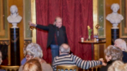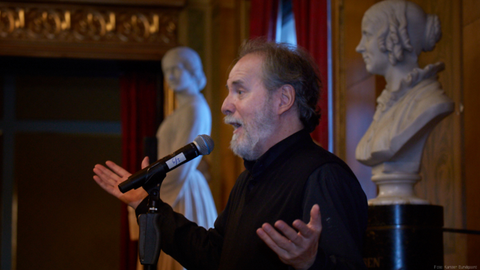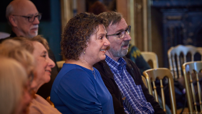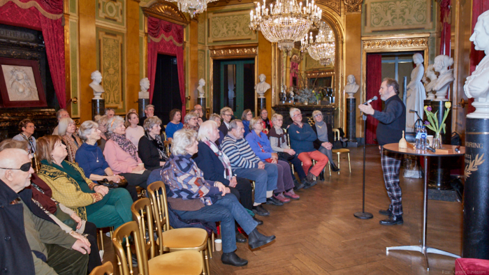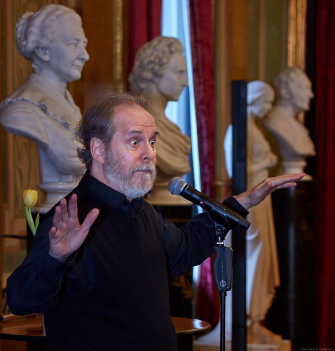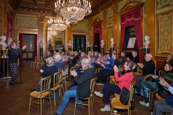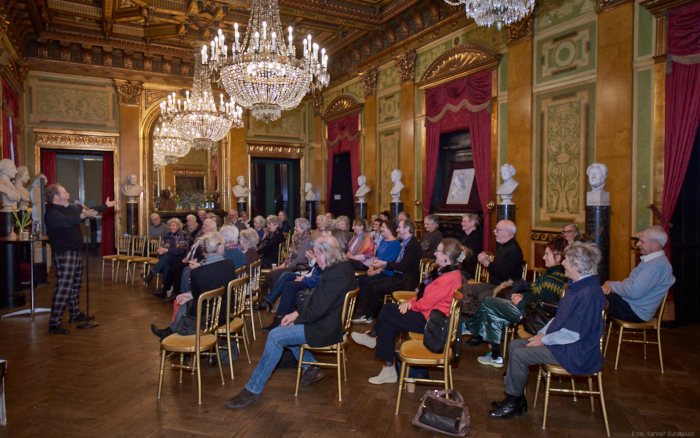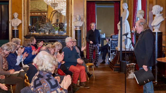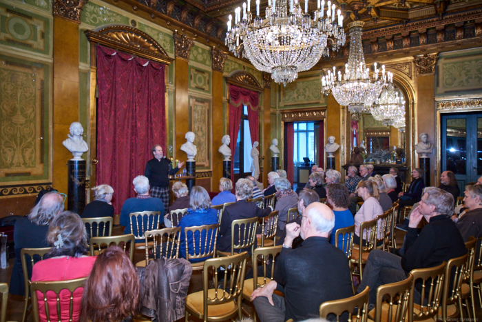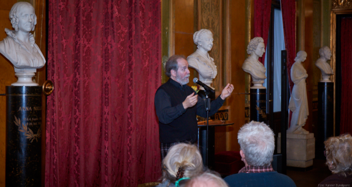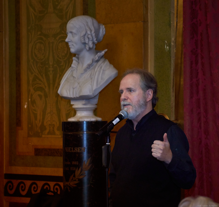 Torsdag den 22 marts havde Akropolis besøg af Det Kongelige Teaters solooboist Henrik Goldschmidt. Og det blev en eftermiddag for fuld udblæsning. At der kan være så megen energi og vilje i en enkelt person er utroligt, og så er han i stand til at formidle det med begejstring. I forbindelse med hans fars erindringer som udkommer som bog inden længe tog han os igennem nogle af familiens op- og nedture, katastrofer og mirakler. Det var spændende og rørende, der blev sunket mange klumper i halsen den eftermiddag. Han fortalt om The Middle East Peace Orchestra, om da han underviste palæstinensiske unge på Vestbredden, om MEPO Youth Project og om hans store engagement som rektor på Goldschmidt Musikakademi altsammen i et forrygende tempo og med megen humor.