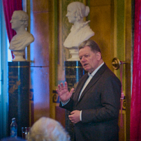 Onsdag den 19. marts kl. 16.15 havde vi sædvanen tro besøg af teatrets nye bestyrelsesformand, tidligere politiker Lars Barfoed, der tiltrådte i november 2023. Som ung drømte han om at bliver skuespiller, men han blev dog cand.jur. fra Københavns Universitet i 1981. Han har en baggrund i det danske erhvervsliv og har i Folketinget repræsenteret Det Konservative Folkeparti fra 2001 – 2015, blandt andet været sit partis medie-, trafik- og kulturordfører. Det var spændende at møde Lars Barfoed og høre om vores bestyrelsesformands visioner og tanker om fremtiden for Det Kongelige Teater.